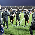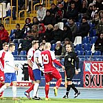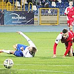 Piłkarze Stali Mielec w ostatnim w 2014 roku meczu na własnym obiekcie przegrali z przyjezdnym Zagłębiem Sosnowiec 0:4. Mecz rozegrany został 23 listopada w temperaturze niewiele powyżej 0 st. C. Spotkanie oglądało 3 tys. kibiców. Fot. ks