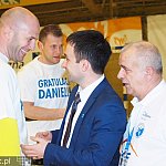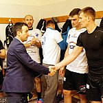 Prezydent Mielca Daniel Kozdęba odwiedził piłkarzy ręcznych PGE Stali Mielec - pierwszy raz po zaprzysiężeniu na stanowisko prezydenta. Zawodnicy przekazali Kozdębie gratulacje wyboru na funkcję prezydenta, ten rozmawiał z nimi w przerwie meczu Pucharu Polski z Azotami Puławy - na parkiecie, przyszedł także po spotkaniu do szatni zespołu.