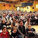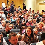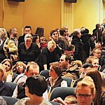 Co najmniej kilkadziesiąt osób nie znalazło już miejsc siedzących na sali widowiskowej, a jednak uczestniczyli w wyjątkowym koncercie charytatywnym dla Filipka ? młodego chłopca uczęszczającego do Przedszkola Miejskiego nr 9, który zachorował na nowotwór złośliwy. Koncert odbył się 14 grudnia 2014 r. Fot. ks