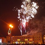 Impreza sylwestrowa 2014/2015 na Placu AK w Mielcu: DJ, sztuczne ognie, orędzie prezydenta i konkurs.