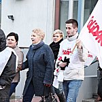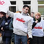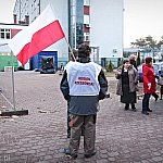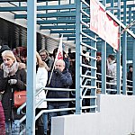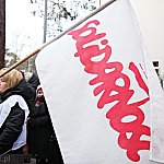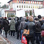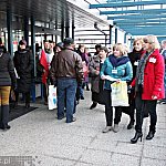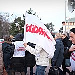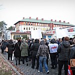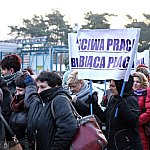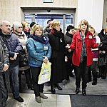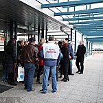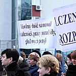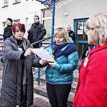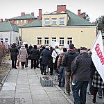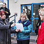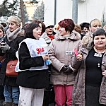 Grupa około 200 pracowników: pielęgniarek, położnych, a także pracowników sekcji technicznej mieleckiego szpitala wzięła udział w dwugodzinnym strajku ostrzegawczym 16 stycznia 2014 r. Od godziny 7:30 do 9:30 odeszli od swoich stanowisk pracy. Domagają się podwyżek, ale nie kosztem zwalniania pracowników. ? Walczymy o stanowiska i pracy i o pieniądze, które już dawno nam się należą ? mówili związkowcy. Fot. ks