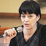 Kilkadziesiąt osób wzięło udział w spotkaniu z Zuzanną Kurtyką 14 lutego 2015 r., wdową po tragicznie zmarłym w katastrofie smoleńskiej byłym prezesie IPN Januszu Kurtyce. Fot. ks