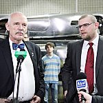 Objeżdżający Polskę Janusz Korwin-Mikke, lider powstającego właśnie ugrupowania KORWiN 25 lutego 2015 r. spotkał się z mieleckimi dziennikarzami w siedzibie jednej z firm działających w Specjalnej Strefie Ekonomicznej.Tematem konferencji były właśnie strefy. Fot. ks