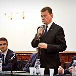 Siedmioro kandydatów Prawa i Sprawiedliwości w wyborach parlamentarnych 28 października 2015 spotkało się z mieszkańcami Mielca, by zachęcać do głosowania na ich kandydatury. Gościem specjalnym był przewodniczący klubu parlamentarnego PiS Mariusz Błaszczak. Spotkanie odbyło się 4 października 2015 w Sali Królewskiej PSM w Mielcu. Fot. ks