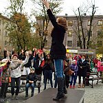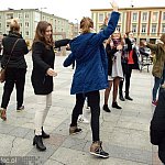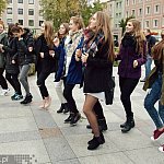 "Żywa rzeźba" - takie hasło przyświecało zorganizowanemu na Placu Armii Krajowej tanecznemu flash mobowi. Do wspólnej zabawy zaprosiło Samorządowe Centrum Kultury i działające w nim grupy taneczne. 23 października 2015 r.