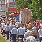 Wierni ze wszystkich mieleckich parafii tłumnie uczestniczyli dzisiaj w nabożeństwach i procesjach z okazji święta Bożego Ciała. 26 maja 2016 r.