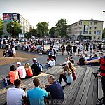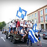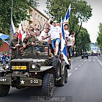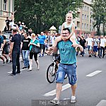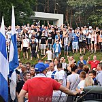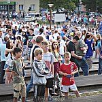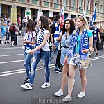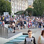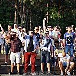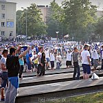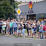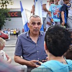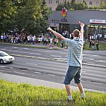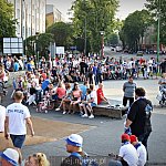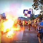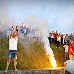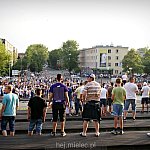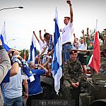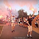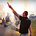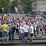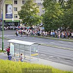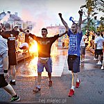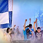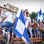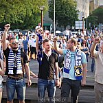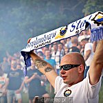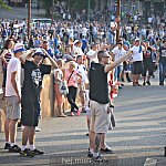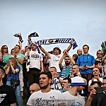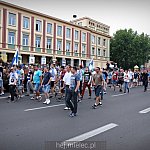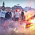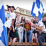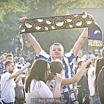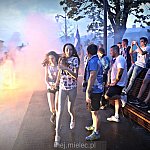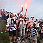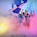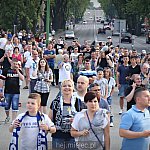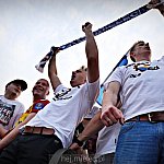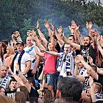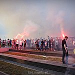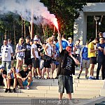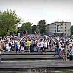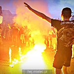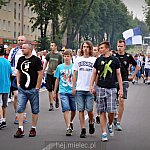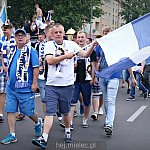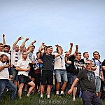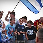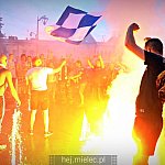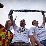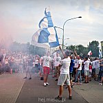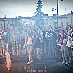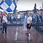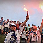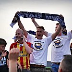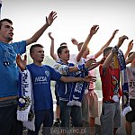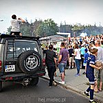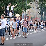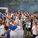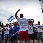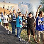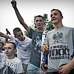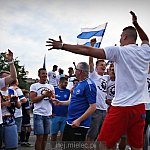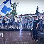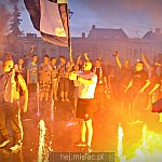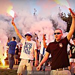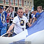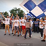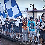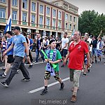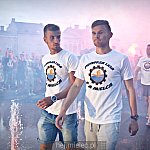 Tysiące kibiców biało-niebieskiej FKS Stali Mielec tuż po bezbramkowo zremisowanym meczu z Olimpią Zambrów zgromadziło się na Górze Cyranowskiej w centrum miasta, by hucznie fetować awans do piłkarskiej I ligi! Kibice przeszli Aleją Niepodległości aż na Rynek Starego Miasta. Feta miała miejsce 28 maja 2016 r. Fot. Kacper Strykowski / hej.mielec.pl