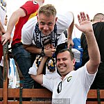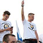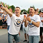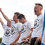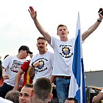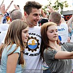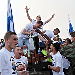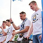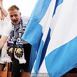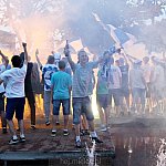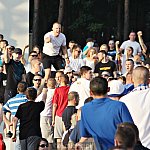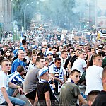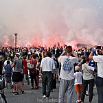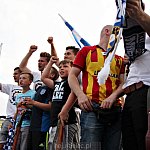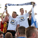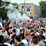 Tysiące kibiców biało-niebieskiej FKS Stali Mielec tuż po bezbramkowo zremisowanym meczu z Olimpią Zambrów zgromadziło się na Górze Cyranowskiej w centrum miasta, by hucznie fetować awans do piłkarskiej I ligi! Kibice przeszli Aleją Niepodległości aż na Rynek Starego Miasta. Feta miała miejsce 28 maja 2016 r.