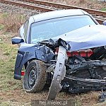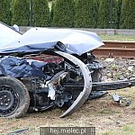 Osobowy hyundai wpadł pod lokomotywę! Kobieta samodziel