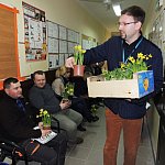 ?Przywitaj wiosnę z Powiatem Mieleckim? to nazwa akcji promocyjnej zorganizowanej z okazji rozpoczynającej się 21 marca 2017 roku kalendarzowej wiosny. W jej ramach kilkaset sygnowanych herbem powiatu kwiatów trafiło w ręce petentów starostwa oraz przechodniów. Fot. Powiat Mielecki