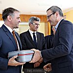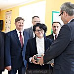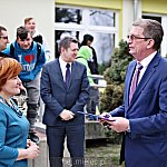 Za sprawą dwóch okoliczności 7 kwietnia 2017 r. w Specjalnym Ośrodku Szkolno-Wychowawczym doszło do krótkiej uroczystości. Pierwszą okazją było przekazanie dyrektorom placówek oświatowym powiatu nowych defibrylatorów AED ? ratujących życie w przypadku zatrzymania akcji serca. Drugą okazją było przekazanie nowego busa do transportu podopiecznych SOSW. Fot. Kacper Strykowski / hej.mielec.pl