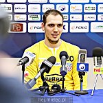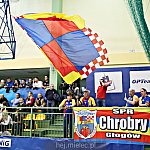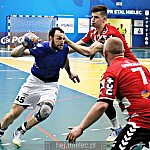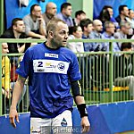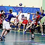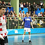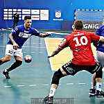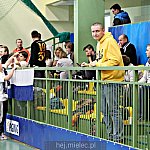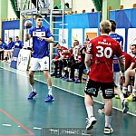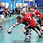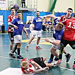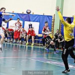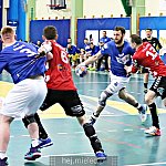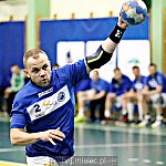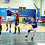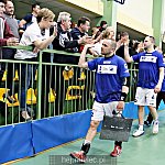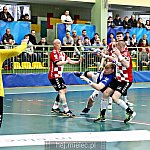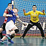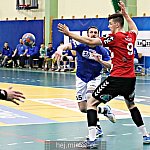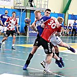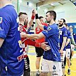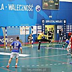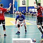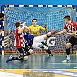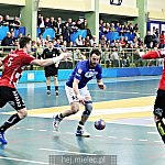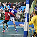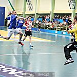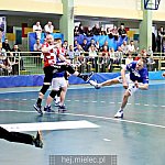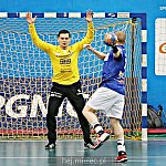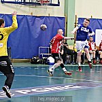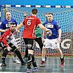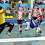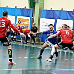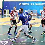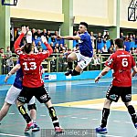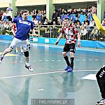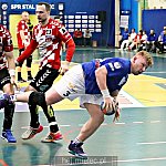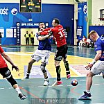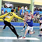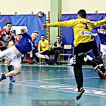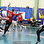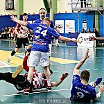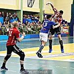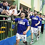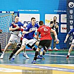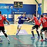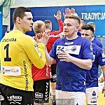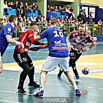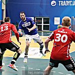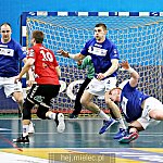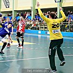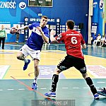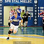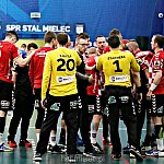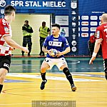 Choć w końcówce stracili kilka bramek, szczypiorniści Stali Mielec zdołali utrzymać wypracowaną w meczu przewagę i wygrali z Chrobrym 30:27. To ostatni mecz rundy zasadniczej pierwszego historycznego sezonu zawodowej PGNiG Superligi piłkarzy ręcznych. Spotkanie rozegrane zostało 7 kwietnia 2017 r. w hali Gimnazjum nr 2. Fot. Kacper Strykowski / hej.mielec.pl