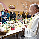 Jednym z obrządków Świąt Wielkanocnych jest święcenie pokarmów w Wielką Sobotę. Na zdjęciach święcenie pokarmów 15 kwietnia 2017 r. w Domu Ludowym w Złotnikach - miejscowość ta podlega pod parafię Ducha Św. w Mielcu. Fot. Kacper Strykowski / hej.mielec.pl