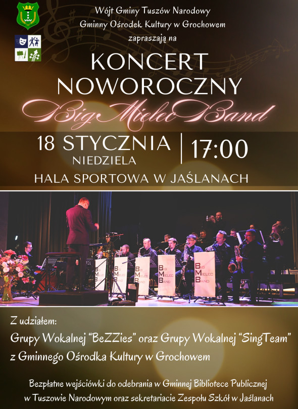 Gminny Ośrodek Kultury w Grochowem oraz Wójt Gminy Tuszów Narodowy zapraszają na Koncert Noworoczny Big Mielec Band.