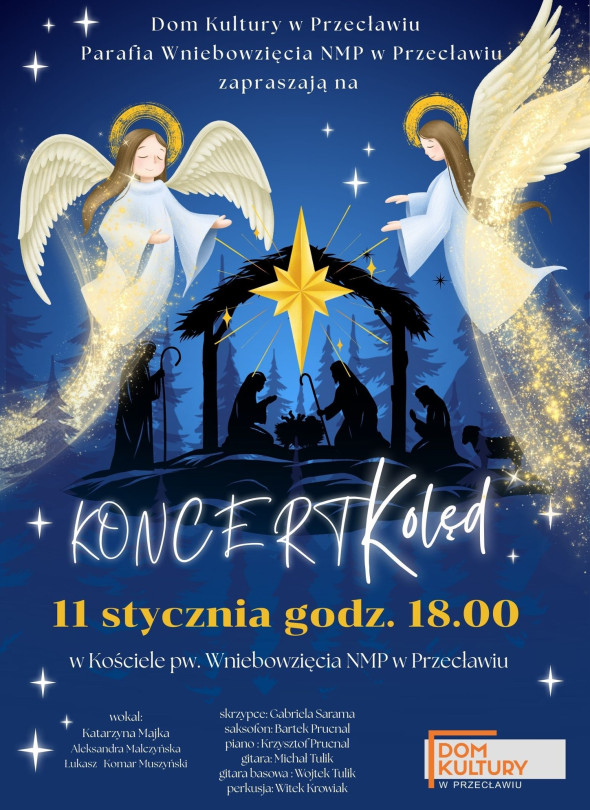 Dom Kultury w Przecławiu oraz Parafia Wniebowzięcia NMP zapraszają na Koncert Kolęd — pełen tradycji i emocji koncert bożonarodzeniowych pieśni.