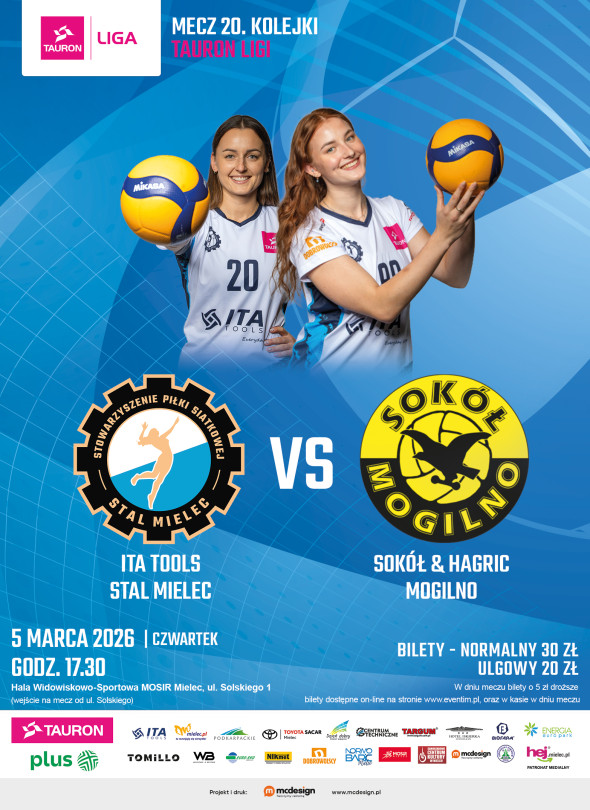 Mecz ITA TOOLS Stal Mielec - Sokół & Hagric Mogilno odbędzie się w ramach 20. kolejki TAURON Ligi.