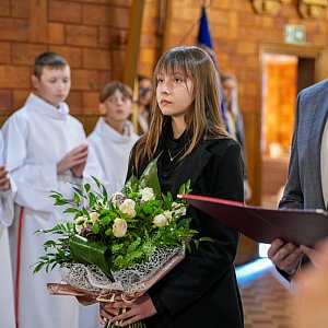 Na zakończenie homilii biskup wyraził życzenie, aby patron – św. Jan Paweł II – był dla całej wspólnoty szkoły przewodnikiem i orędownikiem - Niech jego nauczanie pomaga Wam odkrywać piękno świętości i promieniować dobrocią w codziennym życiu.