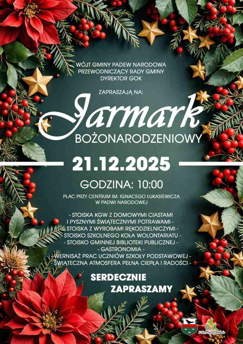Na uczestników jarmarku czekać będą stoiska kół gospodyń wiejskich z domowymi ciastami i pysznymi świątecznymi potrawami oraz stoiska z wyrobami rękodzielniczymi. Swoje stanowiska przygotuje również szkolne koło wolontariatu oraz gminna biblioteka publiczna, a dla odwiedzających przewidziano ofertę gastronomiczną. Podczas wydarzenia odbędzie się także wernisaż prac uczniów miejscowej szkoły podstawowej.