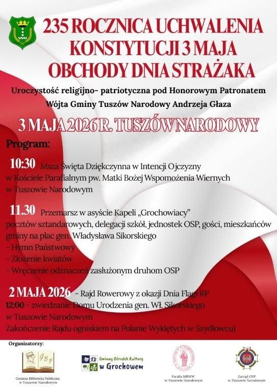 W ramach obchodów zaplanowano również wydarzenia poprzedzające święto 3 maja. 2 maja 2026 roku odbędzie się Rajd Rowerowy z okazji Dnia Flagi RP. Uczestnicy o godzinie 12:00 zwiedzą Dom Urodzenia generała Władysława Sikorskiego w Tuszowie Narodowym, a zakończenie rajdu przewidziano przy ognisku na Polanie Wyklętych w Szydłowcu.