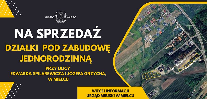 Prezydent Miasta Mielca informuje, że zostały ogłoszone przetargi na sprzedaż nieruchomości niezabudowanych, położonych w Mielcu, obręb 5. Smoczka, przy ul. Józefa Grzycha oraz w rejonie ul. Edwarda Spilarewicza. Działki przeznaczone są pod zabudowę mieszkaniową jednorodzinną (wydane warunki zabudowy).