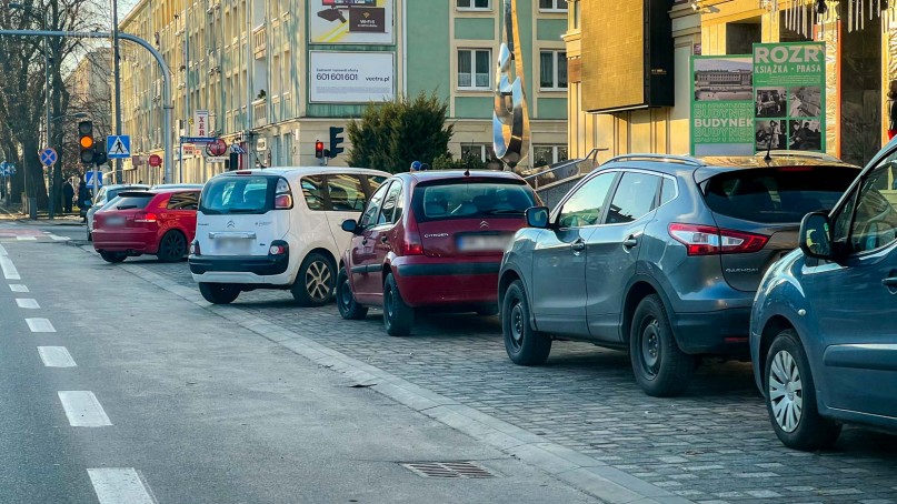 Takie rozwiązanie ma jednak umożliwić pomieszczenie jak największej liczby pojazdów. Niestety skutkiem ubocznym takiego rozwiązania jest częste wystawanie pojazdów na pas rowerowy przy jezdni, a z drugiej strony najeżdżanie na chodnik. To musiało nie spodobać się interweniującemu na policję mieszkańcowi.