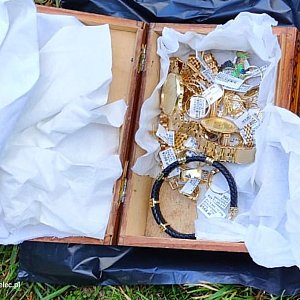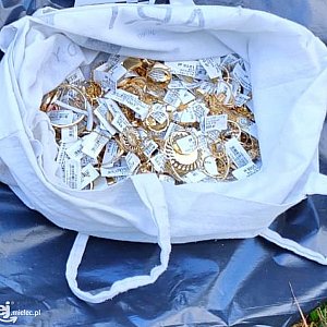 Zapakowane do reklamówek złote łańcuszki, pierścionki i bransoletki policjanci ujawnili w miejscu zamieszkania 39-latka. Część z nich była zakopana w przydomowym ogródku. Inna ukryta była w pomieszczeniu gospodarczym. Ich wartości nie została dokładnie wyceniona, ale pokrzywdzony szacuje, że całość zrabowanego mienia może sięgać nawet miliona złotych.