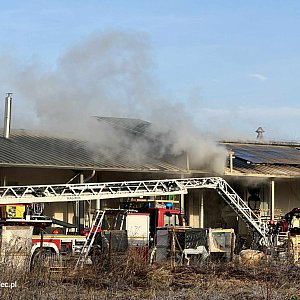 Na miejscu interweniuje kilka zastępów straży pożarnej. Akcja gaśnicza może potrwać kilka godzin.