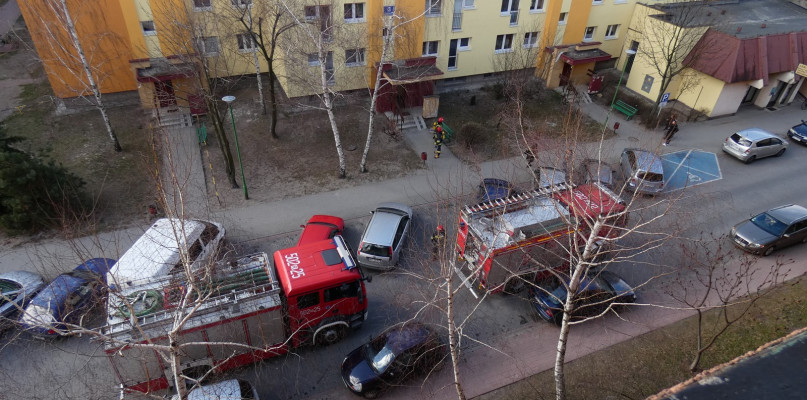 Interwencja straży pożarnej w bloku na osiedlu Szafera