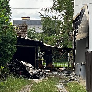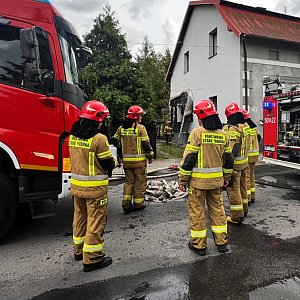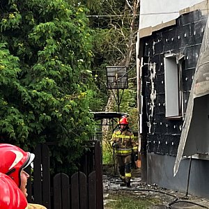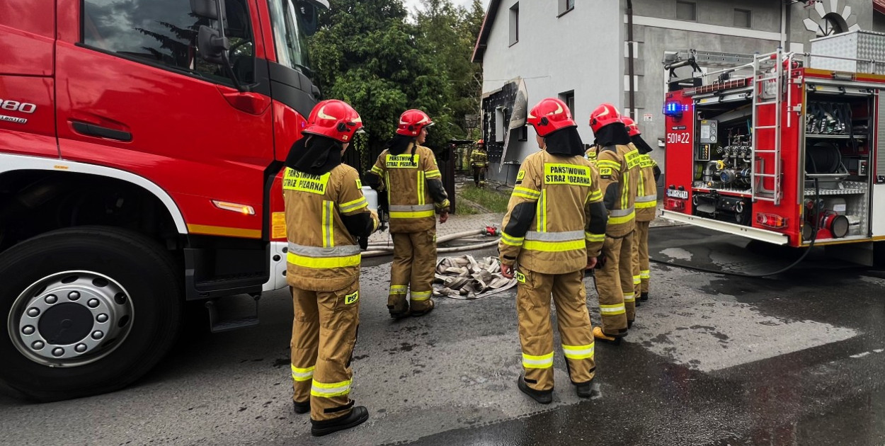 Ogień całkowicie pochłonął drewnianą konstrukcję. Niestety rozprzestrzenił się także na sąsiedni budynek uszkadzając elewację.