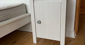 Dwie szafki nocne, drewniane. Kolor jasny szary. Szafki zakupione w ... czytaj więcej