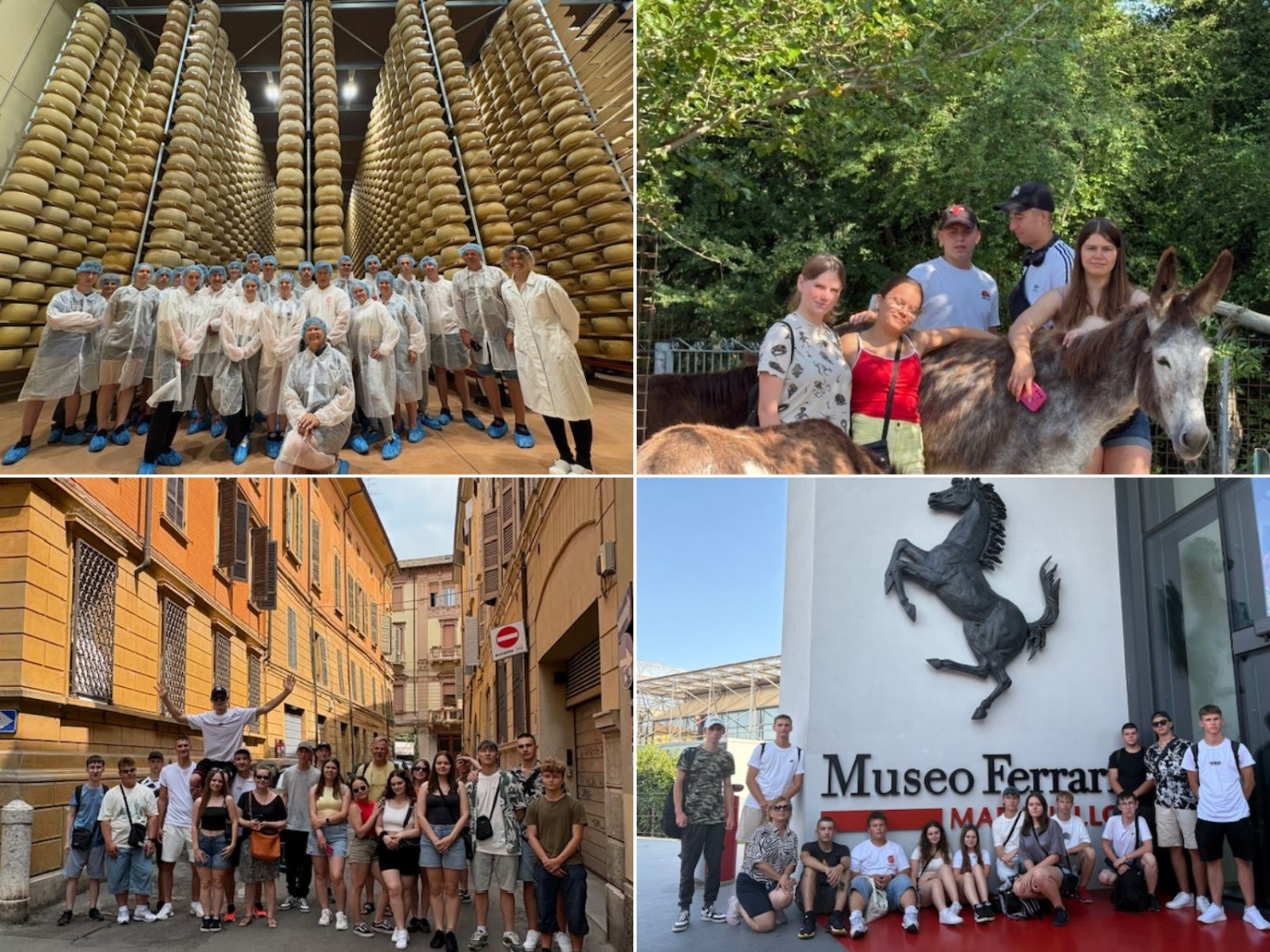 Uczestnicy projektu zwiedzili również miejsca wyjątkowe pod względem kulturowym i edukacyjnym. Odwiedzili m.in. Tradycyjną serowarnię Parmigiano Reggiano, gdzie poznali cały proces produkcji słynnego sera oraz znaczenie certyfikacji DOP dla jakości i ochrony regionalnych produktów, Octarnię w Modenie, specjalizującą się w produkcji octu balsamicznego Aceto Balsamico Tradizionale di Modena DOP, gdzie uczestnicy mieli okazję degustować produkty i poznać ich kulinarne zastosowania oraz Muzeum Ferrari w Maranello, które przybliżyło im historię jednej z najsłynniejszych marek motoryzacyjnych świata, a także pokazało innowacyjne rozwiązania technologiczne w branży automotive.