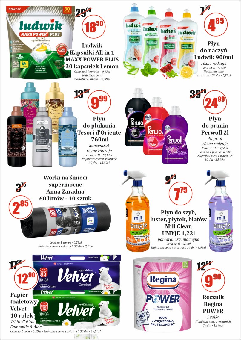 Gazetka uwzględnia także chemię gospodarczą i artykuły higieniczne – od płynów do prania i zmywania, przez papier toaletowy i ręczniki papierowe, po worki na śmieci. Dzięki temu klienci mogą w jednym miejscu zaopatrzyć się zarówno w produkty świąteczne, jak i codzienne.