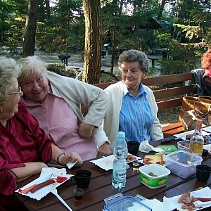 Seniorzy uczestniczyli w różnych zabawach z nagrodami. Przy konkurencjach było wiele śmiechu. Łatwe zadania, traktowane trochę z przymrużeniem oka, rozbawiły nie tylko samych uczestników, ale i pozostałych biesiadujących. Były one łatwe i w dodatku podzielone na te dla kobiet i dla mężczyzn. Podczas wielogodzinnego pobytu w lesie Seniorzy piekli wiele przygotowanych przez siebie smakołyków, wśród których były kiełbaski, szaszłyki, peklowane mięsa. Każdy mógł upiec sobie kiełbaskę w tradycyjny sposób na kiju, nad ogniskiem. Było również wspólne śpiewanie piosenek biesiadnych, były tańce do muzyki przygotowanej przez męską część uczestników ogniska. Chętni mogli spacerować po leśnych ścieżkach i takich osób nie brakowało. Cały wyjazd do lasu zakończył się po godzinie 19:00.Ognisko zorganizowały opiekunki klubów a zostało ono częściowo sfinansowane ze składek członkowskich poszczególnych klubów.