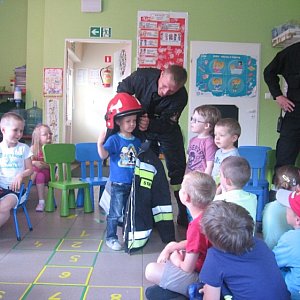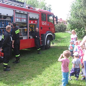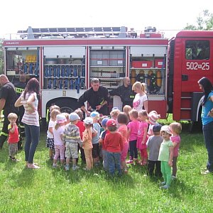 Opowiedzieli oni dzieciom o swojej pracy i przypomnieli zasady bezpieczeństwa. Niewątpliwą atrakcją było testowanie ekwipunku i oglądanie wozów strażackich od wewnątrz.