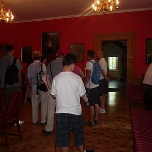 Głównym celem wycieczki była wizyta w siedzibie Muzeum Regionalnego, Pałacyku Oborskich, gdzie oprócz wystaw stałych uczestnicy obejrzeli wystawę twórczości Władysława Żurawskiego - mistrza drzeworytu polskiego. W trakcie pobytu w parku i terenach otaczających dworek, którego głównymi atrakcjami dla rowerzystów były fontanna i piękne, nowe bulwary rzeczne, znalazł się czas na wypoczynek w zaciszu parkowych alei.