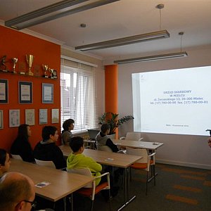 Podczas spotkania zaprezentowano uczniom  m.in.: zasady funkcjonowania administracji skarbowej, genezę powstania Urzędu Skarbowego w Mielcu, strategię działania Urzędu, misję i cele,  schemat struktury organizacyjnej, terytorialny zasięg działania Urzędu, zasady nawiązania stosunku pracy w Urzędzie, dane statystyczne dotyczące liczby składanych zeznań podatkowych, wydanych zaświadczeń, liczby podatników którzy przekazali 1% podatku na rzecz organizacji pożytku publicznego oraz   zasady przesyłania deklaracji drogą elektroniczną.