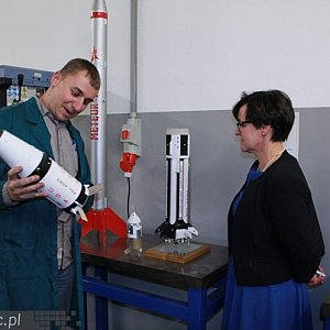 Joanna Kluzik-Rostkowska oglądała modele powstające w Laboratorium i uczestniczyła w wystrzeleniu tzw. modelu rakiety kosmicznej.