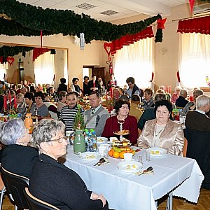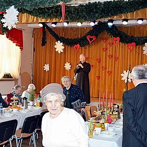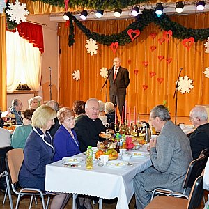 Spotkanie seniorów rozpoczęła Msza św., a po niej wszyscy udali się do sali widowiskowej na dalszą cześć uroczystości. Spotkanie rozpoczął ksiądz Andrzej Rams, proboszcz chorzelowskiej parafii, witając zebranych i składając życzenia zdrowia, miłości i ciepła rodzinnego. Życzenia złożyli również Wójt Gminy Mielec Józef Piątek, kierownik GOPS Mielec Zofia Blach oraz dyrektor SOKiS Chorzelów Dorota Kieraś-Jędrychowska.