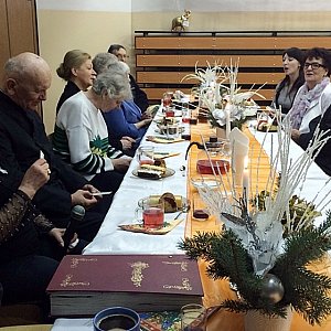 W części oficjalnej spotkania głos zabrali zaproszeni goście, którzy kilkakrotnie powtarzali jak ważne jest podtrzymywanie wzajemnych relacji i kontaktów osób z różnych środowisk. Zarówno goście z DPS jak i księża zawsze chętnie odwiedzają klubowiczów z „Wrzosu” i podtrzymują wieloletnią tradycję świątecznych spotkań. Przy suto zastawionych stołach, na których królowały najbardziej tradycyjne świąteczne przysmaki, panowała bardzo odświętna atmosfera. Po życzeniach i wielu ciepłych słowach ze strony zaproszonych Gości przyszedł czas na wzajemne składanie życzeń.