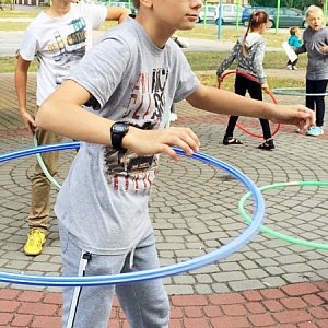 Przed przyjazdem strażaków uczestnicy festynu malowali wspomnienia z wakacji, skakali na skakance, kręcili kołem hula hop. W wielu konkurencjach, w których wydawać by się mogło dominują i są lepsze dziewczynki, chłopcy równie świetnie dawali sobie radę. Bardzo dobrze kołem hula hop kręciło trzech chłopców, a czterech innych dłużej skakało na skakance niż ich koleżanki.