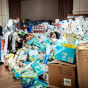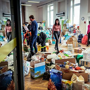 Miasto włączyło się w pomoc obywatelom Ukrainy i zorganizowało zbiórkę najpotrzebniejszych nowych rzeczy, takich jak koce termiczne, ręczniki, śpiwory, poduszki, karimaty, materace dmuchane, koce, środki czystości, ręczniki papierowe, pieluchy dla dzieci, kawę, herbatę, cukier oraz wodę pitną.