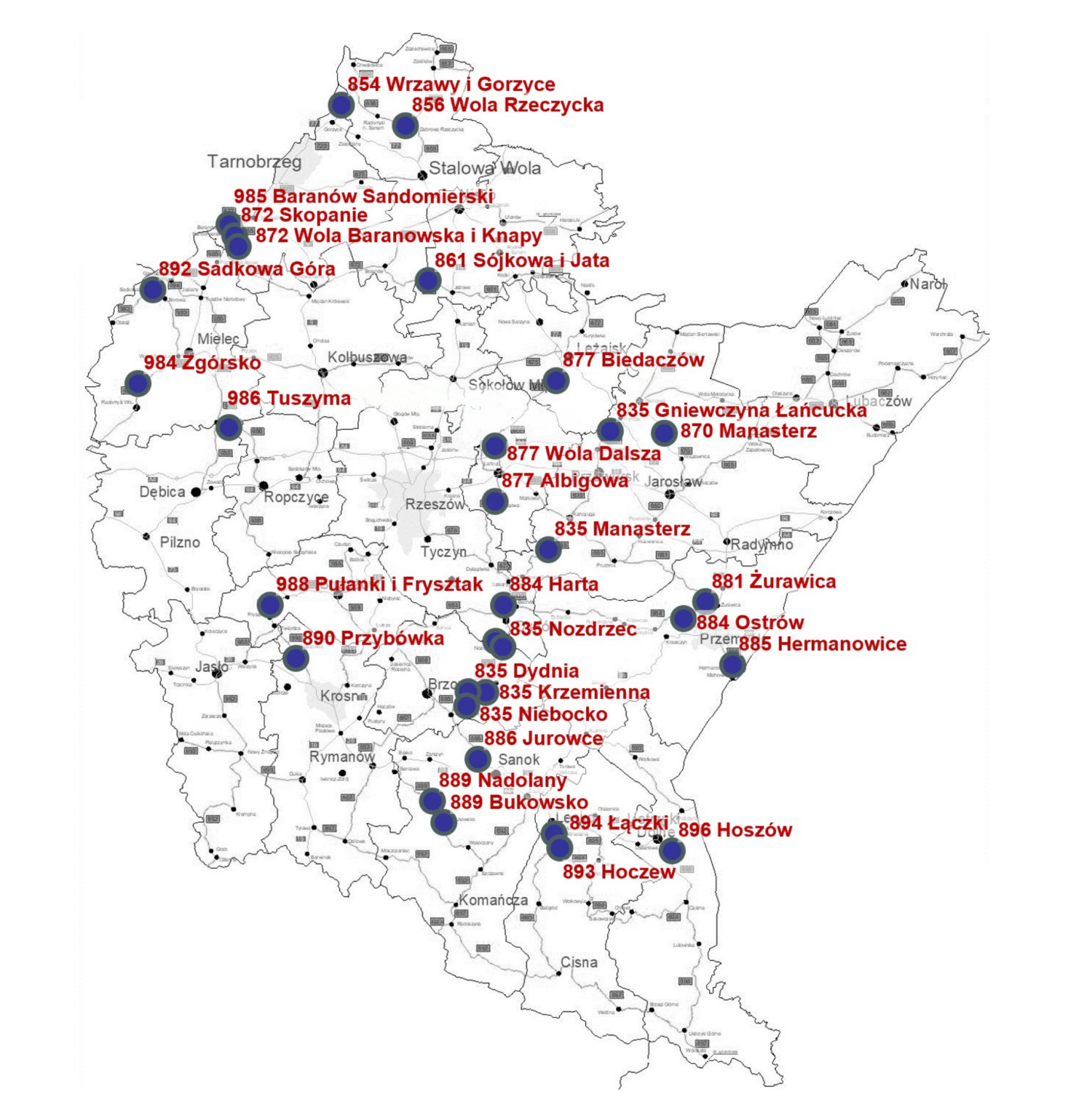 Nowa infrastruktura dla pieszych i rowerzystów powstała w 23 gminach: Jawornik Polski, Tryńcza, Bukowsko, Lesko, Borowa, Przecław, Radomyśl Wielki, Dydnia, Gorzyce, Frysztak, Baranów Sandomierski, Łańcut, Dynów, Czarna, Żurawica, Sanok, Ustrzyki Dolne, Wiązownica, Leżajsk, Przemyśl, Wojaszówka, Jeżowe i Nozdrzec.
