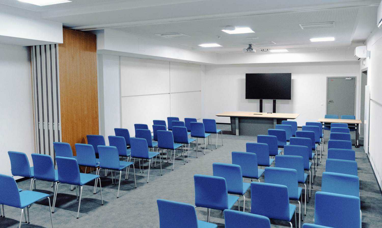 Dla większych firm przygotowano Salę Konferencyjną nr 1. To przestronne wnętrze o powierzchni 94 m², które swobodnie pomieści nawet 100 osób. Sala jest przytulna i klimatyczna, co sprzyja integracji w większym gronie. Co ważne, wynajem tej dużej przestrzeni to koszt zaledwie 300 zł.