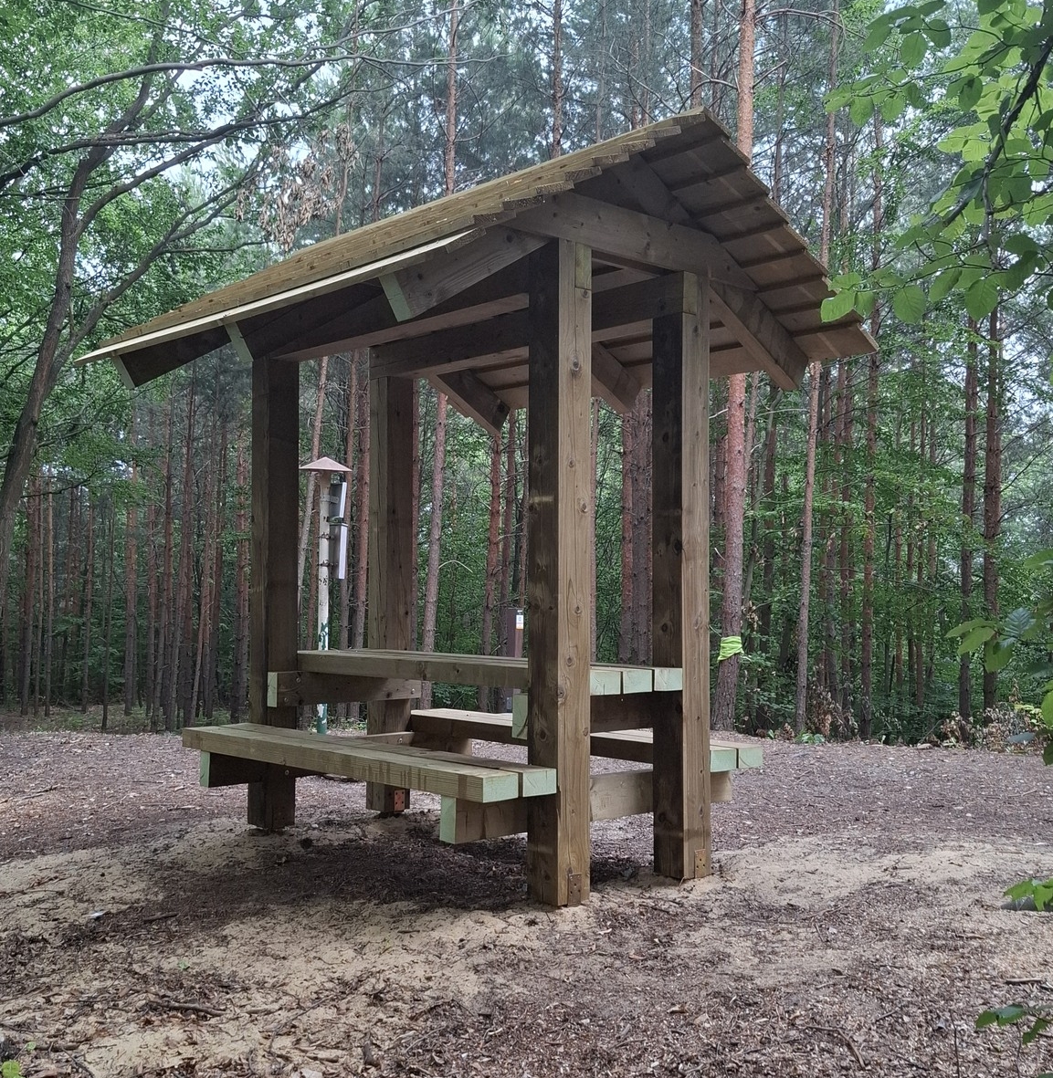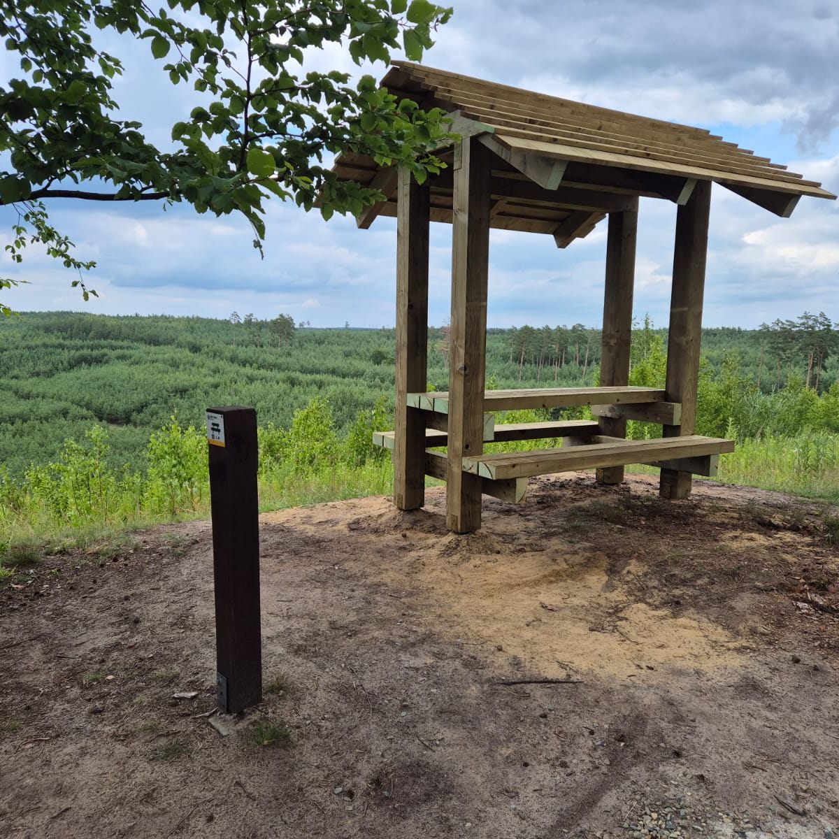 Podobna wiata stanęła również na tak zwanej Starej Kopalni, czyli w miejscu widokowym w rejonie dawnej wsi Biesiadka.