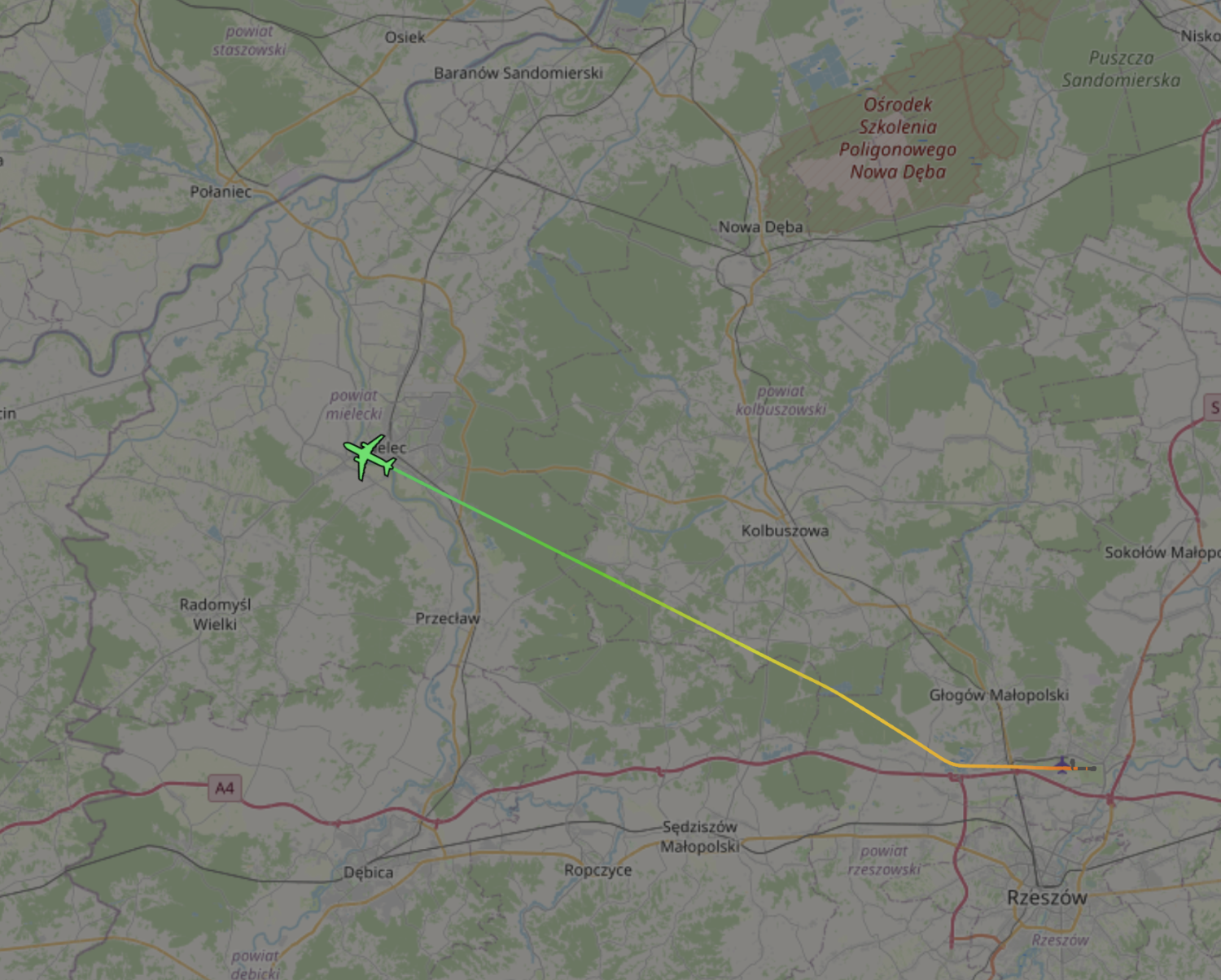 Dzisiaj rankiem, z rzeszowskiego lotniska w kierunku Stanów Zjednoczonych wystartował samolot z ukraińskim prezydentem. Około 9:20 maszyna przeleciała nad zabudowaniami Mielca, na wysokości około 3700 metrów.
