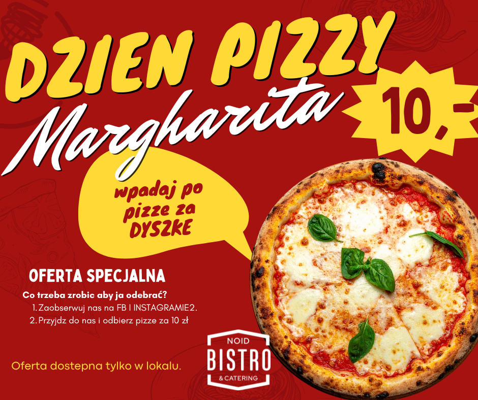 W ramach świętowania Dnia Pizzy, w NOID Bistro w hali MOSiR Mielec będzie można zamówić klasyczną Margheritę o średnicy 32 cm za symboliczne 10 zł.