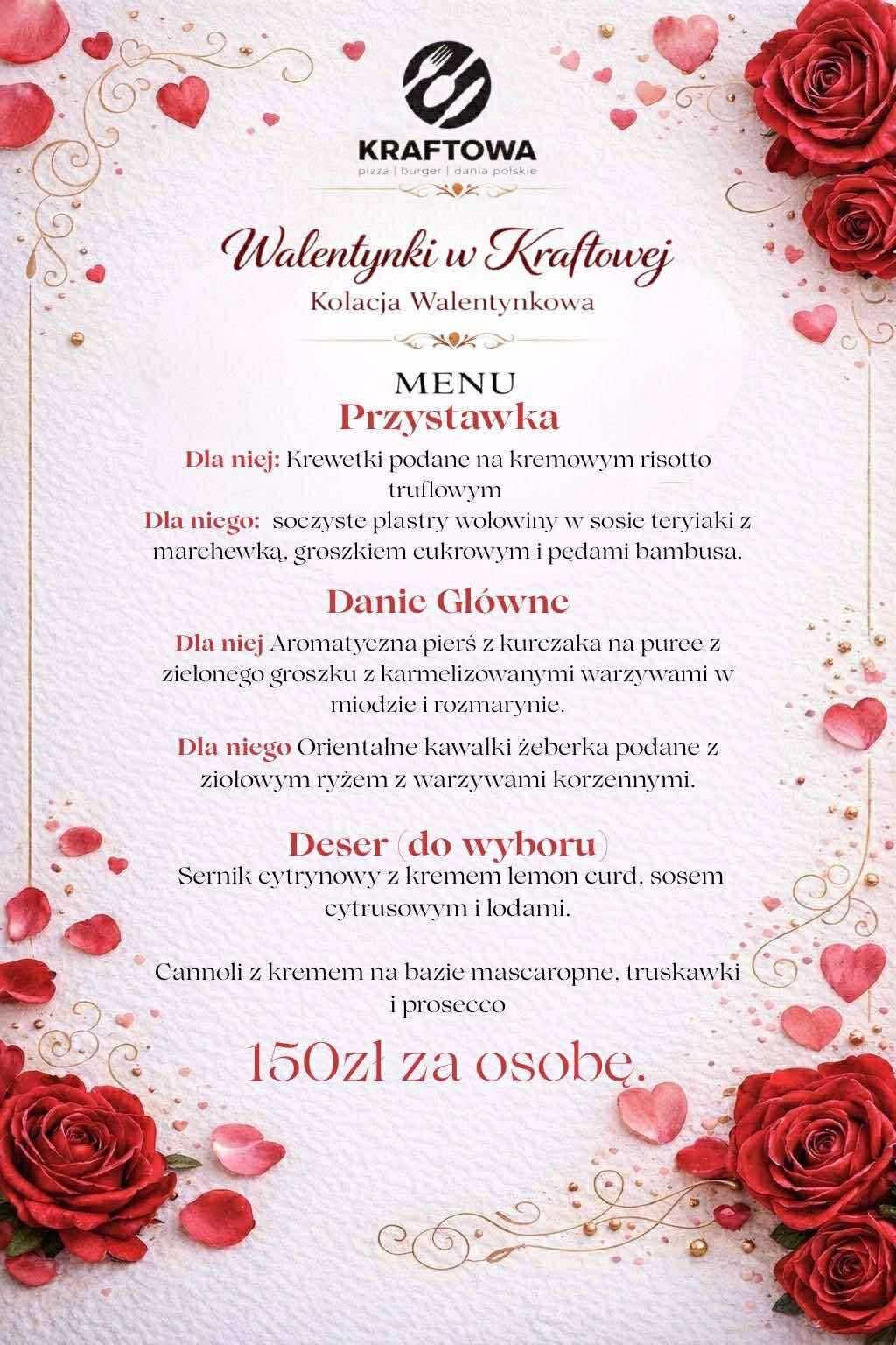 Tego wieczoru w Kraftowej rządzić będą wykwintne smaki. Szef kuchni przygotował specjalne, autorskie menu, które ma być dopełnieniem romantycznego wieczoru. Choć szczegóły dań pozostają miłą niespodzianką, goście mogą spodziewać się kompozycji, które zaskakują i zachwycają. To nie jest zwykła kolacja – to doświadczenie kulinarne zaprojektowane tak, by celebrować miłość przy wspólnym stole.