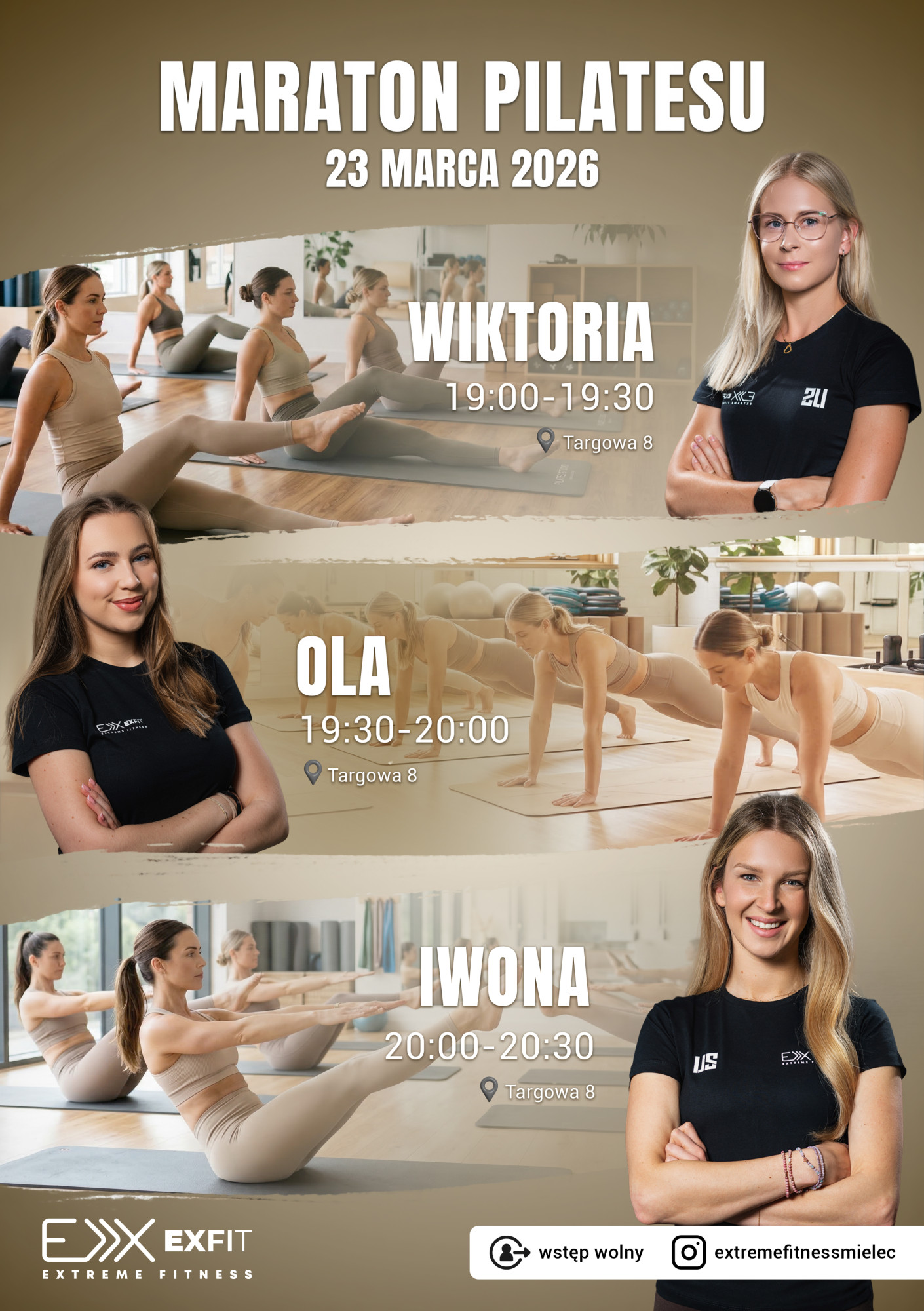Maraton został zaplanowany w nieco innej formule niż standardowe zajęcia. Całość potrwa 90 minut i zostanie podzielona na trzy 30-minutowe bloki treningowe. Każdy z nich poprowadzi inna trenerka, jednak przez cały czas na sali obecne będą wszystkie instruktorki.