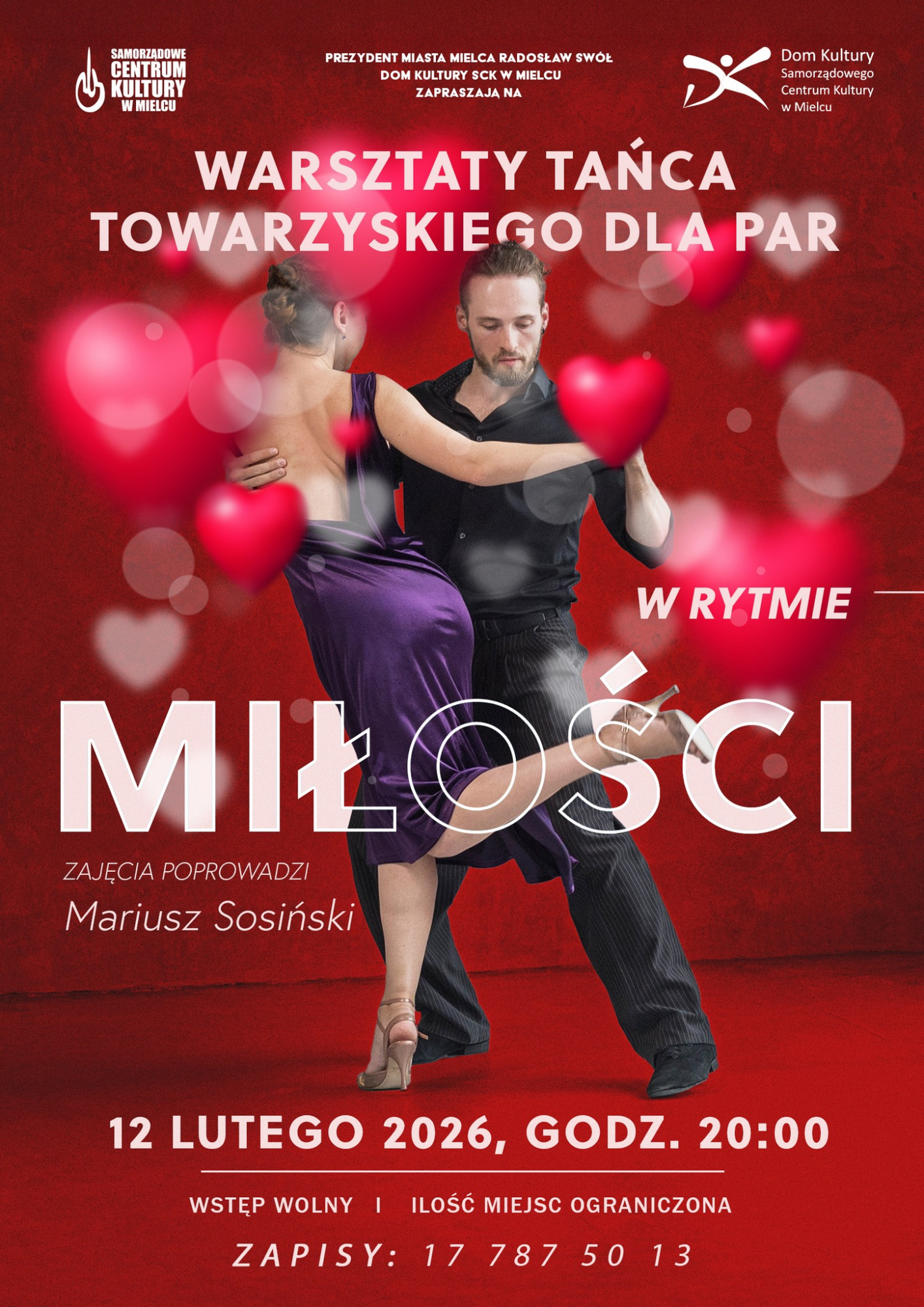 Dom Kultury SCK ma pomysł na taneczny trening przedwalentynkowy. Na dwa dni przed Walentynkami pełnoletnie (18+) pary mają możliwość wzięcia udziału w bezpłatnych zajęciach tanecznych w Domu Kultury SCK.