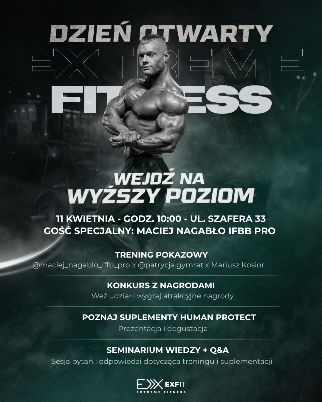 Gościem specjalnym wydarzenia będzie Maciej Nagabło – utytułowany zawodnik federacji IFBB PRO i jeden z najbardziej rozpoznawalnych polskich kulturystów. Znany ze swojego profesjonalizmu i konsekwencji w działaniu, podzieli się swoją wiedzą, doświadczeniem oraz podejściem do treningu na najwyższym poziomie.